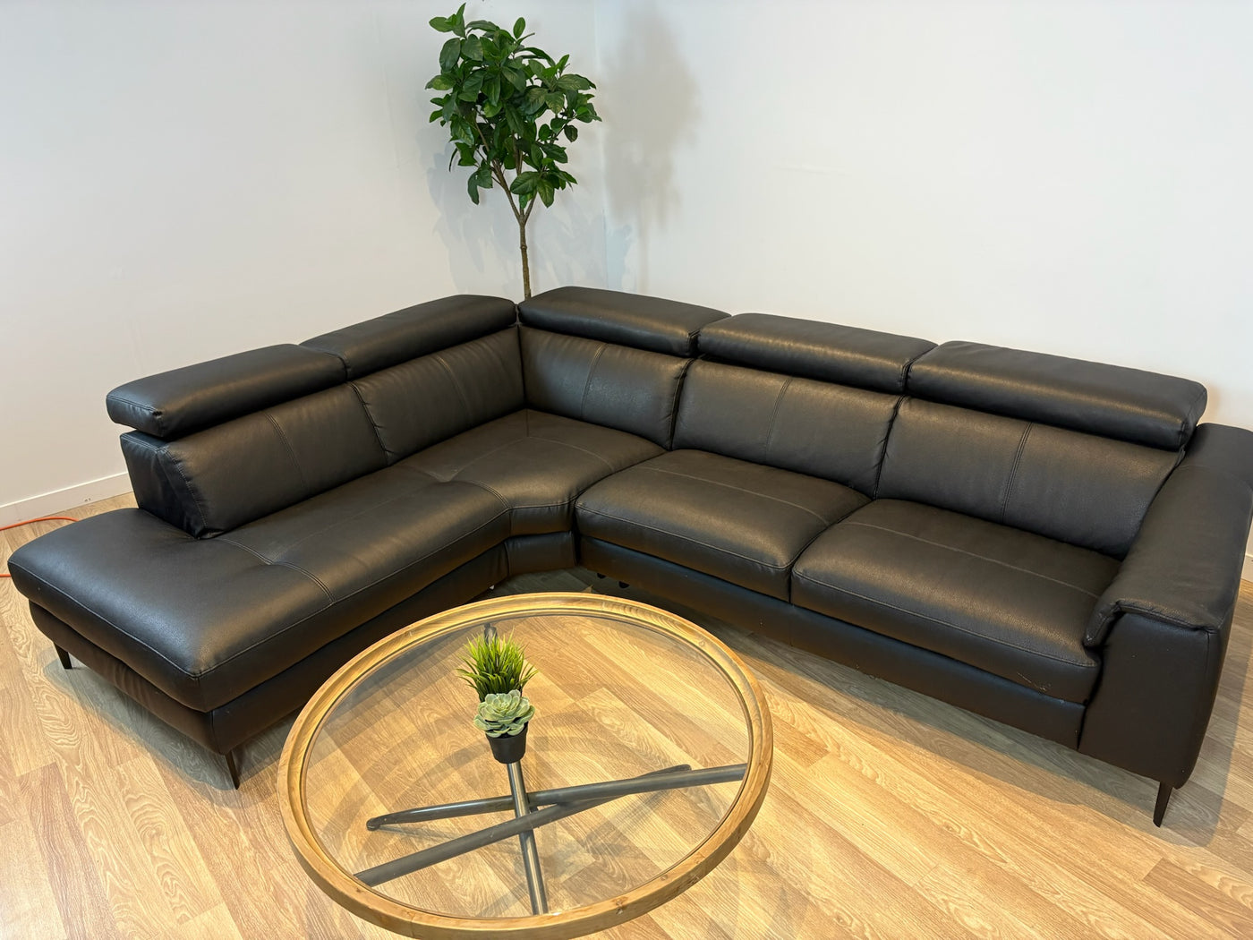 Sleek Black Leather Sectional